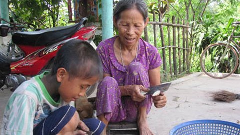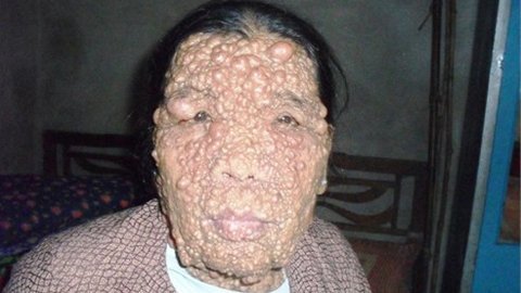Bà Nguyễn Thị Đáng, 60 tuổi ở xóm Đền, thôn Trung (Bình Lục, Hà Nam) toàn thân nổi những khối u và rất nhiều cục to, tròn mọc khắp cơ thể, không ai là không cảm thấy thương tâm, cũng có nhiều người cảm thấy rùng mình không dám nhìn.
