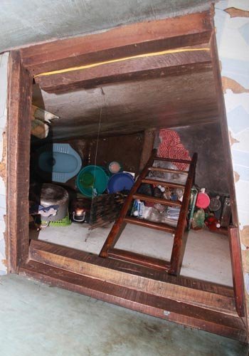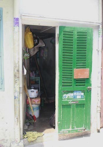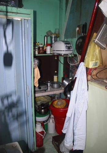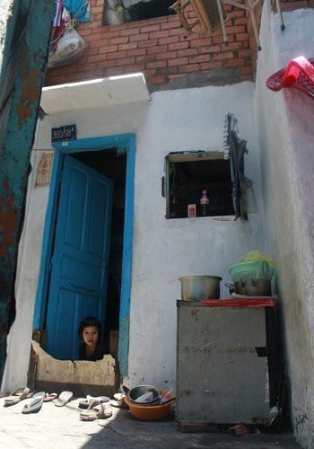 | Hẻm 185 Cống Quỳnh, P.Nguyễn Cư Trinh, Q.1, có nhiều căn nhà diện tích chỉ 3 - 4 m2. Đầu hẻm là nhà ông Trần Văn Minh, chiều ngang chỉ 1,3m, còn chiều dài hơn sải tay. Gia đình ông có 3 người, đến bữa thì phải trèo lên “lầu 1” để ăn uống, sinh hoạt, ngủ; còn chưa đến bữa thì đứng, ngồi, đi lại dưới con hẻm. |