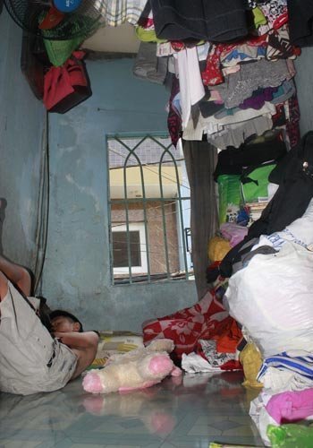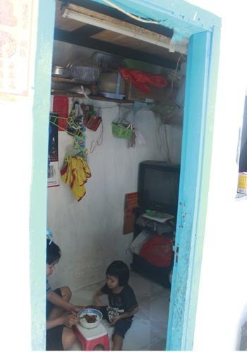 | Căn nhà của chị Nguyễn Thị Dung trong hẻm 360 Nguyễn Thị Minh Khai, P.5, Q.3 rộng 2m2, nhưng có 6 người sinh sống. Con cái của chị học tập, ăn cơm, sinh hoạt ngay trên sàn nhà. Việc nấu ăn và các sinh hoạt khác thì phải tận dụng đường hẻm. Những đứa trẻ càng lớn thì nhà càng chật, chị phải gửi 3 đứa bên nhà người em. |