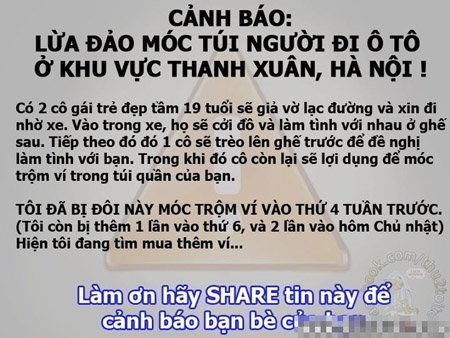 Những cảnh báo về hai cô gái lừa đảo gạ tình để móc túi, thông báo "triệu tập họp lớp" hay cấm đổ rác khiến nhiều người sửng sốt khi đọc.