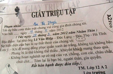 | Giấy triệu tập họp lớp. |