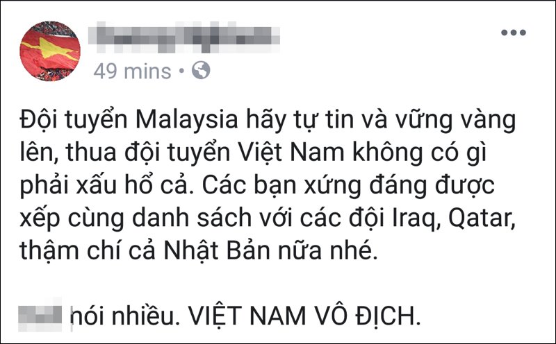 Một nữ phóng viên viết trên trang cá nhân của mình, ủng hộ Malaysia đoạt chức... á quân AFF Cup 2018. |