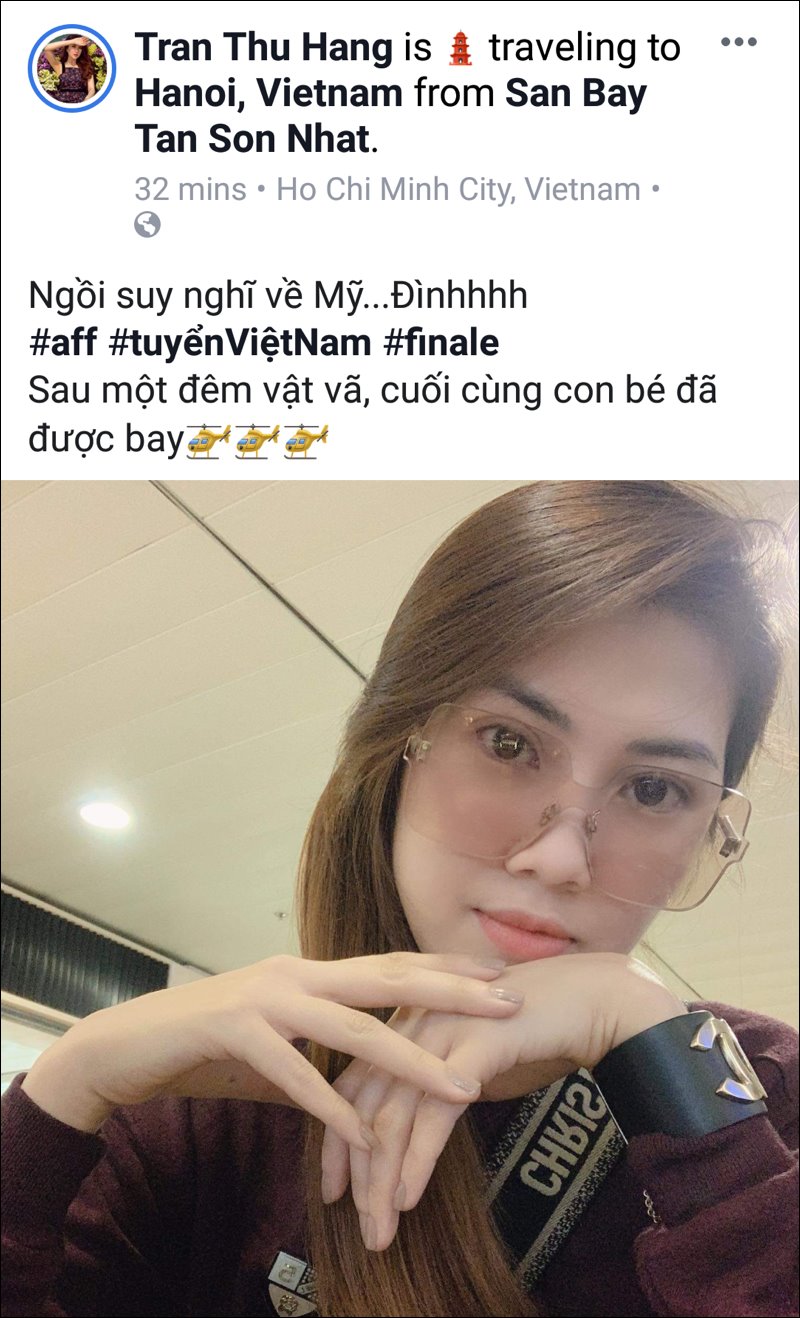 Diễn viên Hồ Bích Trâm đăng ảnh ủng hộ tuyển Việt Nam. |