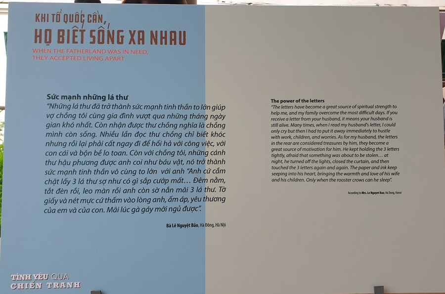 Giám đốc Bảo tàng Phụ nữ Việt Nam Nguyễn Thị Tuyết chia sẻ tại buổi khai mạc triển lãm: “Với những người đã tham gia vào hai cuộc kháng chiến chống Pháp và Mỹ, đã hy sinh xương máu cho nền độc lập, tự do của Tổ quốc thì sức mạnh để vượt qua những năm tháng đau thương, mất mát đó chính là lý tưởng sống cao đẹp, tình yêu Tổ quốc và tình yêu lứa đôi trong sáng, thiêng liêng. Họ đã viết nên những mối tình đi cùng năm tháng để mỗi khi nhắc lại, chúng ta lại càng trân trọng, thêm tin vào tình yêu và những điều đẹp đẽ trong cuộc sống”.