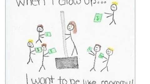 Giải thích: Mẹ cô bé làm nghề bán xẻng và đã thu được khá nhiều tiền trước khi một cơn bão tuyết ập đến. Song bức tranh lại khiến cô giáo nghĩ rằng mẹ học sinh này làm nghề… múa cột! Cô giáo đã gửi thư về cho gia đình để hỏi về bức tranh lạ, và bà mẹ đã hồi đáp kèm theo lời hứa sẽ kiểm tra bài tập về nhà của con cẩn thận hơn trước khi nộp bài cho cô giáo.