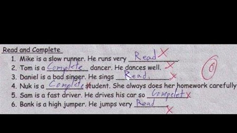 Học sinh nhầm tưởng là điền một trong hai từ ‘read’(đọc) và ‘complete’ (hoàn thành) vào các chỗ trống.