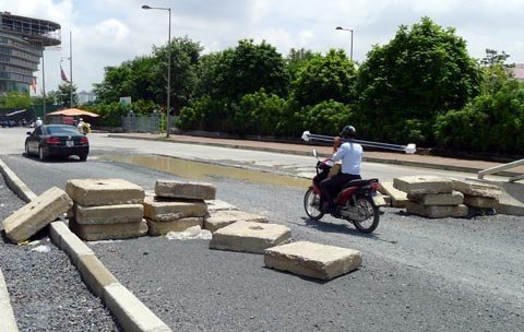 Cây cầu vượt đầu đại lộ Thăng Long nhìn từ phía dưới ai cũng nghĩ đã hoàn thiện![]() Hai đầu cầu biển báo cũng đã được cắm ![]() Không kể ngày mưa hay nắng, những hố voi tạo thành chiếc ao nước trên cầu ![]() ![]() ![]() Những tấm bê – tông vẫn ngổn ngang trên đường ![]() Hệ thống dây điện chiếu sáng bừa bãi trên cầu ![]() Cỏ mọc um tùm ![]() Sắt nối 2 nhịp cầu rỉ sét ![]() ![]() Người dân vất vả “bò” qua những mối nối trên cầu ![]() Hai đầu cầu là 2 ao nước ít khi… cạn |