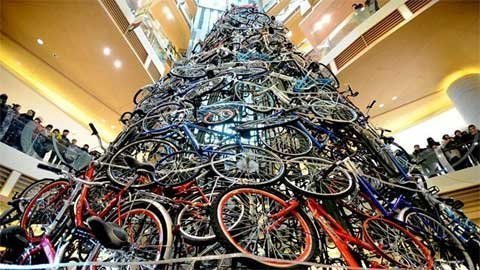 Cây thông Xe đạp ở Shenyang, Trung Quốc.