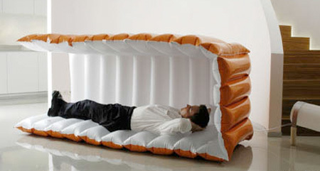 Chiếc giường hơi có tên Nappak này không chỉ cho bạn một giấc ngủ êm ái mà còn rất tiện lợi. Khi bạn không cần sử dụng đến nó, bạn có thể cho nó “xì hơi” rồi cuộn thành một bó nhỏ chỉ nặng 0,5 kg.