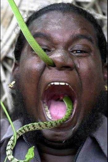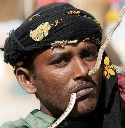 Những chiêu dụ rắn ở Pakistan không khỏi khiến người xem kinh người khi những con rắn độc bò qua miệng, mũi của người điều khiển.