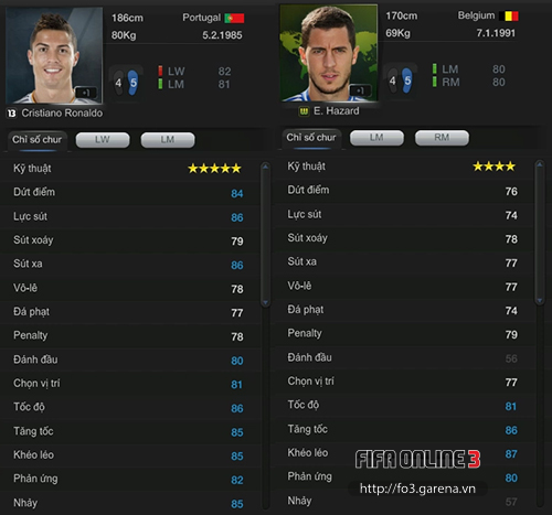 Điều này đồng nghĩa với chỉ số penalty trong game của 2 ngôi sao này cũng được đánh giá tương xứng (78 và 79)