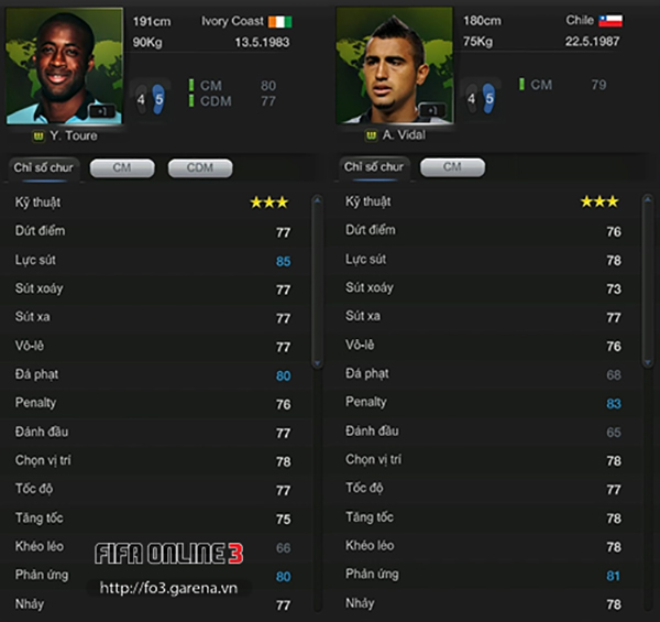 Yaya Toure Thẻ WC; Vidal Thẻ WC: Không cần phải bàn cãi gì nhiều vệ 2 tấm lá chắn này ở khu trung tuyến, khả năng lên công về thủ nhịp nhàng, Toure và Vidal quán xuyến một khu vực rất rộng ở hàng tiền vệ và sẵn sàng tham gia tấn công.