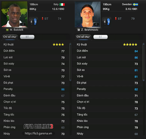 Balotelli Thẻ WC; Ibrahimovic Thẻ ’13: Những gì mà đội hình này còn thiếu là 2 tiền đạo có khả năng càn lướt, tì đè và dứt điểm tuyệt vời. Đồng thời để hợp với phong cách “Penalty” của toàn đội, yêu cầu bắt buộc là hai bộ đôi này phải có chỉ số Penalty cao. Về khoản này thì Balotelli và Ibrahimovic khó có đối thủ.