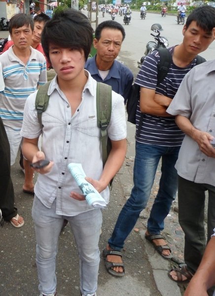 Không được vào phòng thi, thí sinh này hoảng loạn khiến nhiều người xung quanh phải vào động viên. Phạm Anh Tuấn lúc này mới bình tĩnh trở lại nhưng nét mặt thì ủ rũ, chỉ vì tắc đường, Tuấn đã để lỡ kỳ thi quan trọng, nó có thể thay đổi tương lai của cậu.