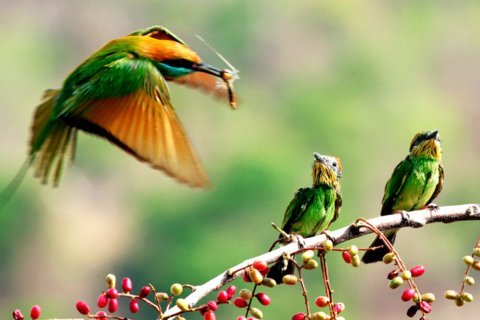 của các loài chim giẻ cùi, vàng anh, chim ăn ong, chim cắt, hồng vũ,… với các