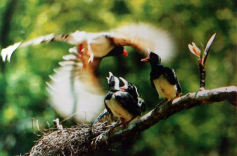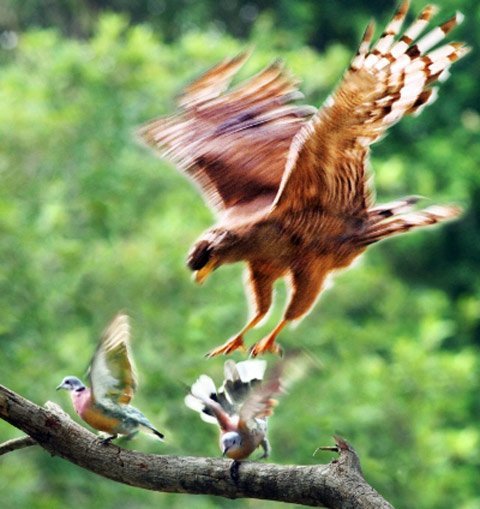 cảnh săn mồi, mớm ăn cho con, ấp trứng, dạy con chuyền cành, tập bay, làm tổ,...