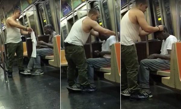 Thương cảm trước hoàn cảnh của một cụ ông vô gia cư cùng đi trên chuyến tàu điện ngầm ở Manhattan, một chàng trai tốt bụng đã cởi phăng chiếc áo đang mặc trên người để dành tặng ông. Cảnh tượng cảm động lọt vào ống kính máy quay hồi tháng 1 khiến chàng trai được đông đảo ca ngợi là "soái ca" của năm.