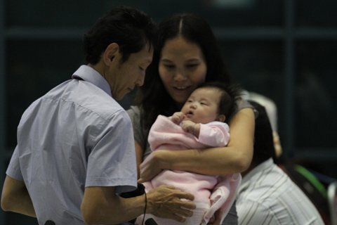 | Jin Yong Gyu luôn chỉn chu trong việc chăm sóc cô con gái đầu lòng. |