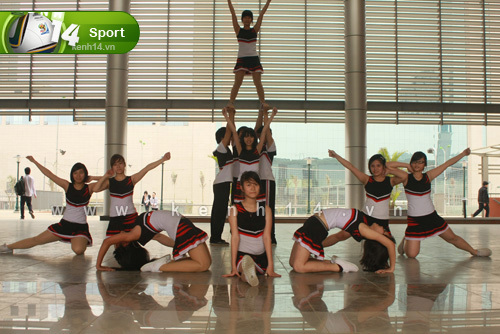 Một động tác khó và lúc này mới thấy được vai trò quan trọng các bạn nam trong đội (Teen mình lưu ý là chớ nên bắt chước nhé vì các bạn ở đây đều tập luyện khá "cứng" rồi mới làm được những động tác "khoai" thế này đấy".