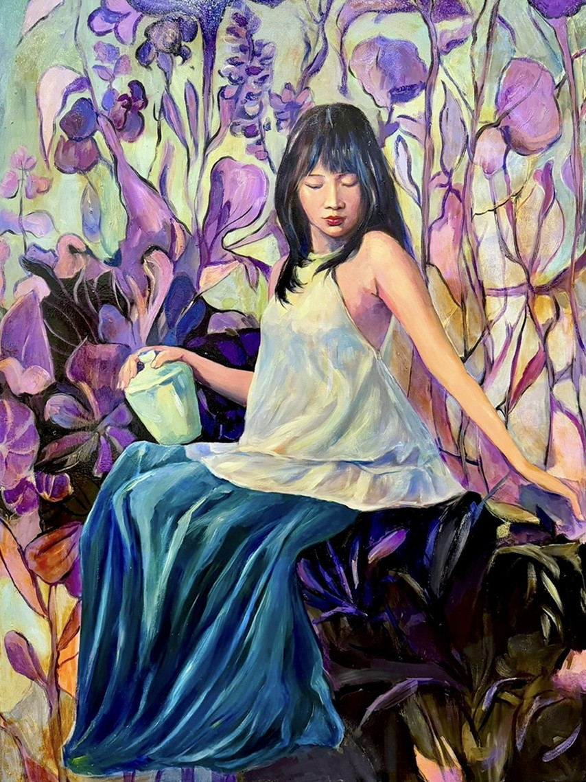 Như chủ đề triển lãm, Hoàng Võ vẽ những cô gái đang độ xuân thì với phong cách tả thực, gần gũi, mỗi nhân vật đều thể hiện cá tính và cảm xúc riêng.