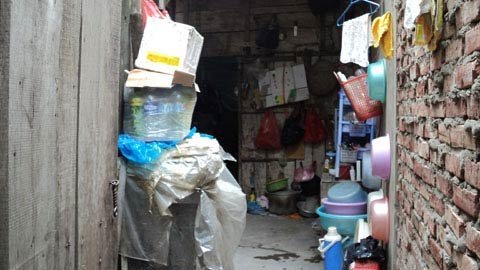 | Ngách đi vào một phòng trọ chỉ rộng chừng 50cm, phải nghiêng người mới lọt qua |