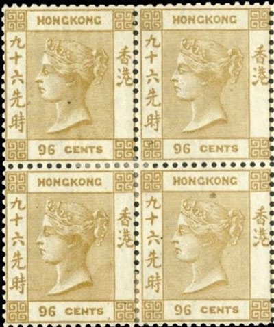 Con tem này mang hình chân dung nữ hoàng Victoria và có màu olive, được in vào năm 1864. Đây là con tem đắt nhất trong lịch sử bưu chính Hồng Kông, với mệnh giá 96 cent Hồng Kông, tương đương 12 cent Mỹ. Do lỗi in ấn, 52 trang tem này đã có màu olive thay vì màu nâu xám như bình thường, chưa kể lỗi về hình thủy ấn và chữ CC bị in sai vị trí. Trên thế giới hiện chỉ có 4 con tem này và đều nằm trong tay những nhà sưu tập tem nổi tiếng. Tháng 1 năm nay, một con tem này được bán đấu giá ở Hồng Kông với mức giá 6,4 triệu đôla Hồng Kông, lập kỷ lục giá trong các lần đấu giá tem ở đây.