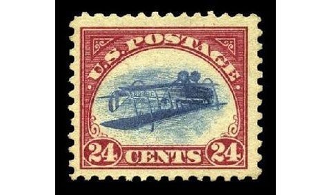 Đây là con tem đầu tiên cho thư chuyển phát theo đường hàng không, phát hành năm 1918. Do lỗi xảy ra trong quá trình in ấn, một số con tem đã bị in ngược hình chiếc máy bay và được bán trước khi phát hiện lỗi. Có khoảng 100 con tem lỗi này còn đến nay. Vào năm 2005, một lô 4 con tem này được mua với giá 3 triệu USD.