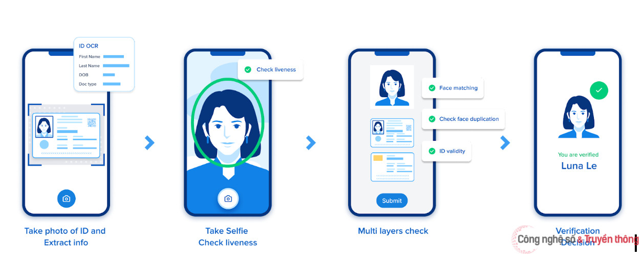 Thông thường, quy trình eKYC bao gồm 3 bước chính: