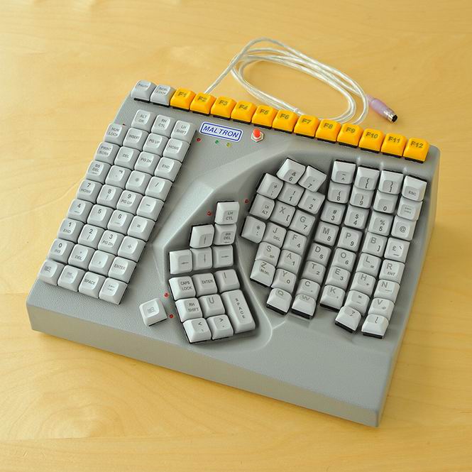 PCD Maltron còn thiết kế các mẫu bàn phím 3D có thể vừa khít với bàn tay của người dùng. Có bàn phím còn cho phép dùng với 1 tay như chúng ta thấy ở ảnh trên. Và mẫu bàn phím dùng với 1 tay này vẫn còn được bán cho đến tận ngày nay.
