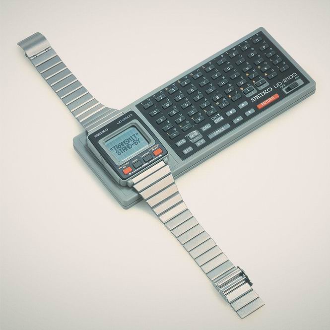 Vào thập niên 80, máy tính bắt đầu thu nhỏ lại dưới hình dạng của những chiếc đồng hồ. Mẫu Data 2000 và UC-2000 của Seiko là những sản phẩm như vậy. Chúng có thể lưu trữ được 2.000 kí tự trong bộ nhớ của mình. Tuy nhiên, máy vẫn cần phải có một bàn phím rời để nhập liệu. Và cả hai chiếc đồng hồ trên đều được bán kèm bàn phím để bạn có thể dùng khi cần đến.