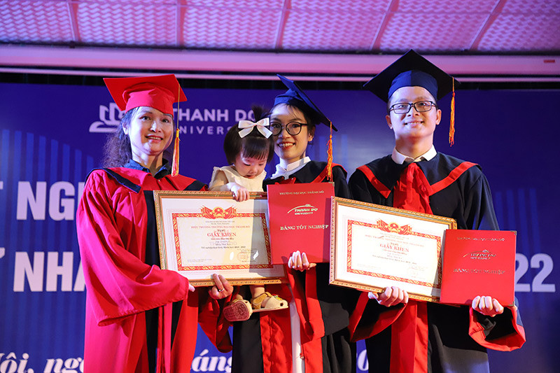 Hội trường lễ tốt nghiệp của ĐH Thành Đô còn có sự xuất hiện của gia đình tân dược sĩ Đỗ Văn Hiệp. Vợ chồng anh Hiệp tham dự buổi lễ trong vai trò là bạn cùng khoa - người tri kỷ cùng nhà - ba mẹ của một em bé đáng yêu.