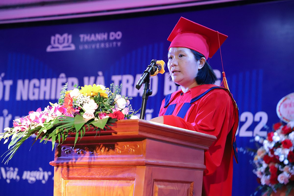 Thay mặt lãnh đạo nhà trường, TS. Nguyễn Thúy Vân - Phó hiệu trưởng ĐH Thành Đô đã gửi lời chúc tốt đẹp nhất và lời cảm ơn đến các tân kỹ sư, cử nhân, dược sĩ cùng các bậc phụ huynh vì đã tin tưởng lựa chọn và đồng hành cùng ĐH Thành Đô. Đồng thời, TS. Nguyễn Thúy Vân cũng gửi lời cảm ơn tới các thế hệ thầy cô giáo và cán bộ viên chức vì luôn đồng hành cùng nhà trường vượt qua khó khăn trong giai đoạn đại dịch để hoạt động đào tạo không bị gián đoạn.
