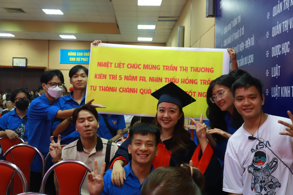 Bên cạnh không khí trang trọng và ý nghĩa là sự vui nhộn của sinh viên, Câu lạc bộ (CLB) tình nguyện của ĐH Thành Đô đã chuẩn bị banner hài hước nhằm chúc mừng thành viên CLB tốt nghiệp. Sinh viên ĐH Thành Đô luôn có sự đồng hành của những người bạn hài hước, tốt bụng và nhiệt tình.