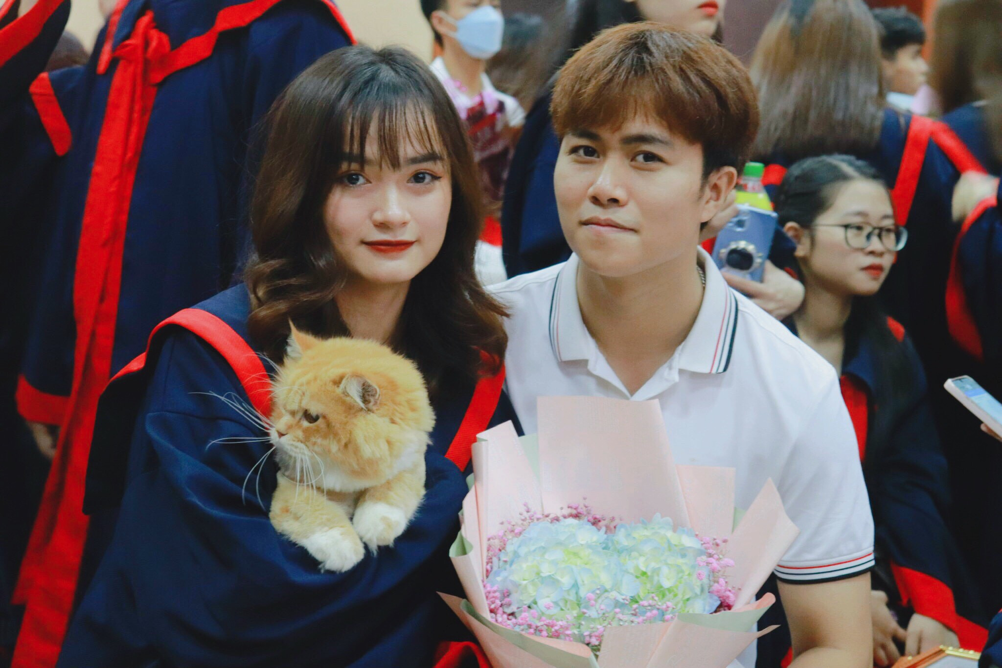 Một hình ảnh vui nhộn nữa tại Lễ tốt nghiệp là sự xuất hiện của “Boss cưng” - chú mèo đáng yêu đến "chúc mừng" các bạn sinh viên.