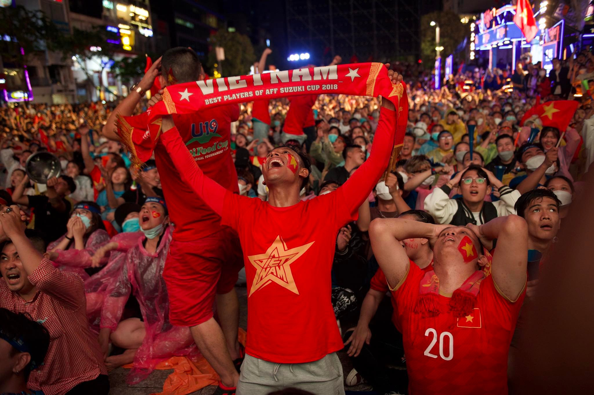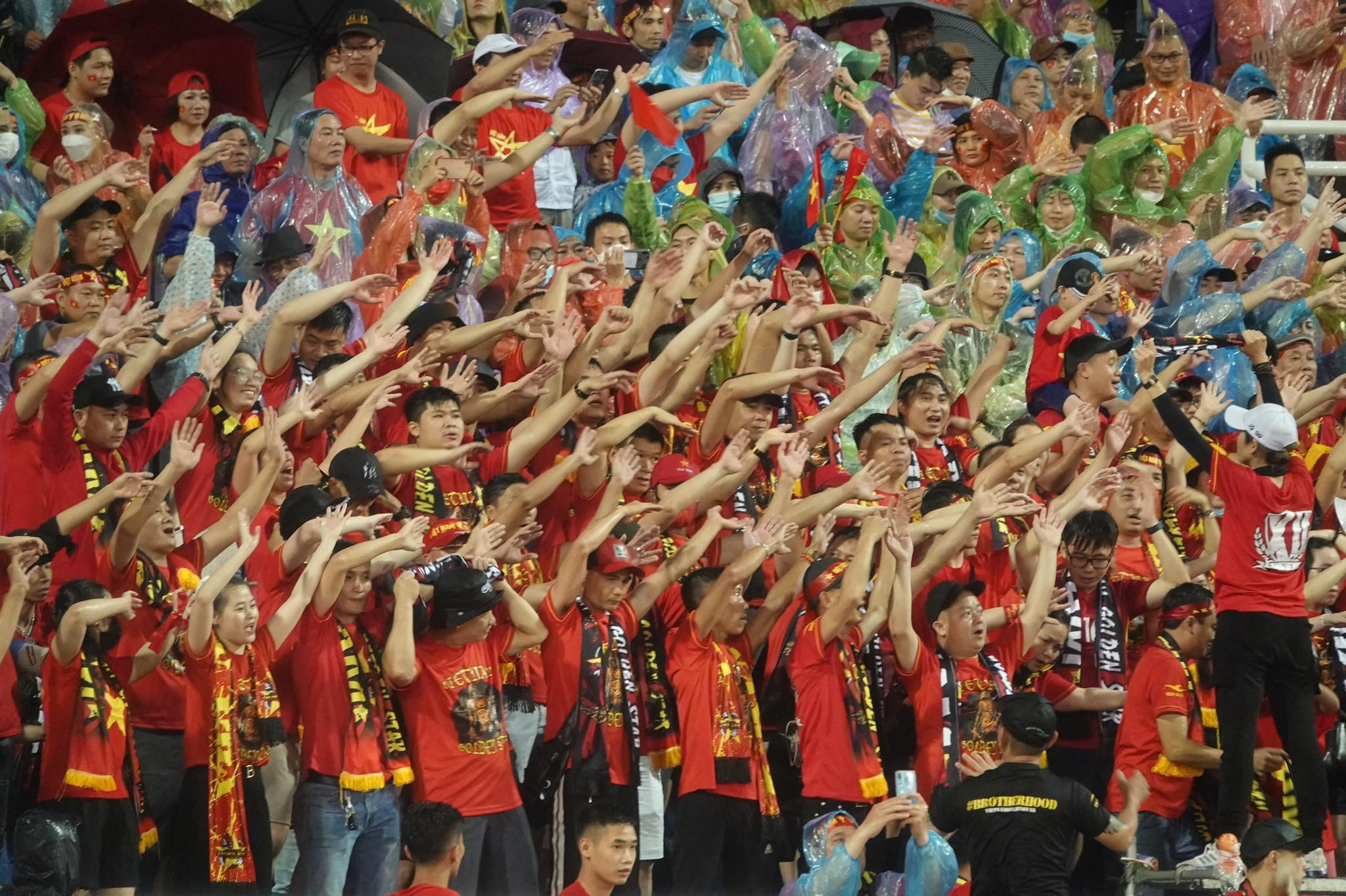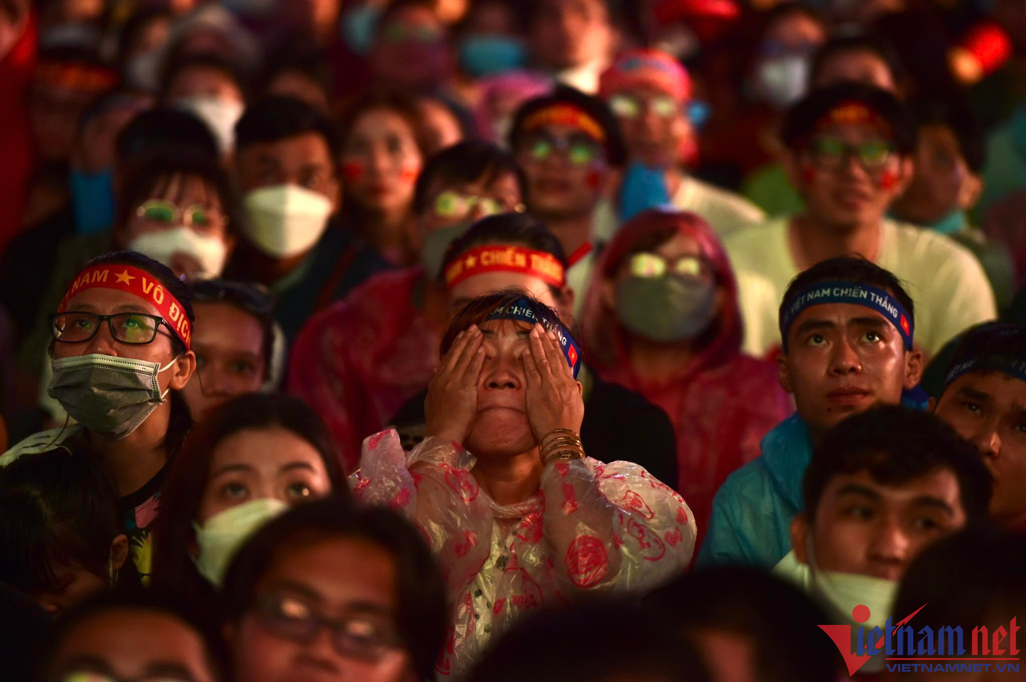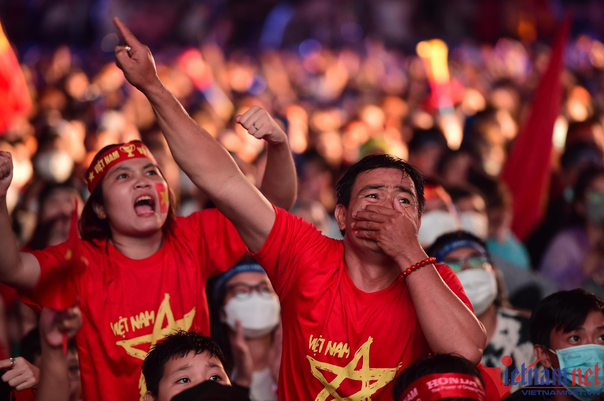 Nhiều người hâm mộ thể hiện các cung bậc cảm xúc theo diễn biến của trận đấu và những tiếng hò reo cổ vũ, mong cho đội tuyển Việt Nam chiến thắng.