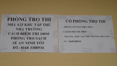 | Nhà trọ cho thí sinh thuê vào mùa chặt chém. |