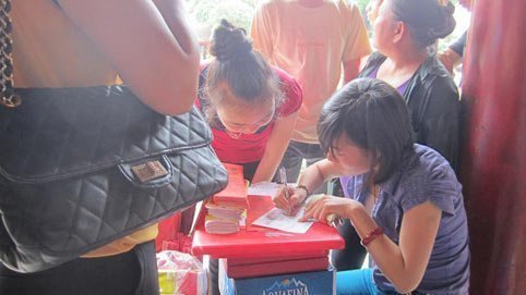 | Dịch vụ viết sớ cầu may ở Văn Miếu kiếm bộn tiền với giá 15.000đ/lá sớ. |