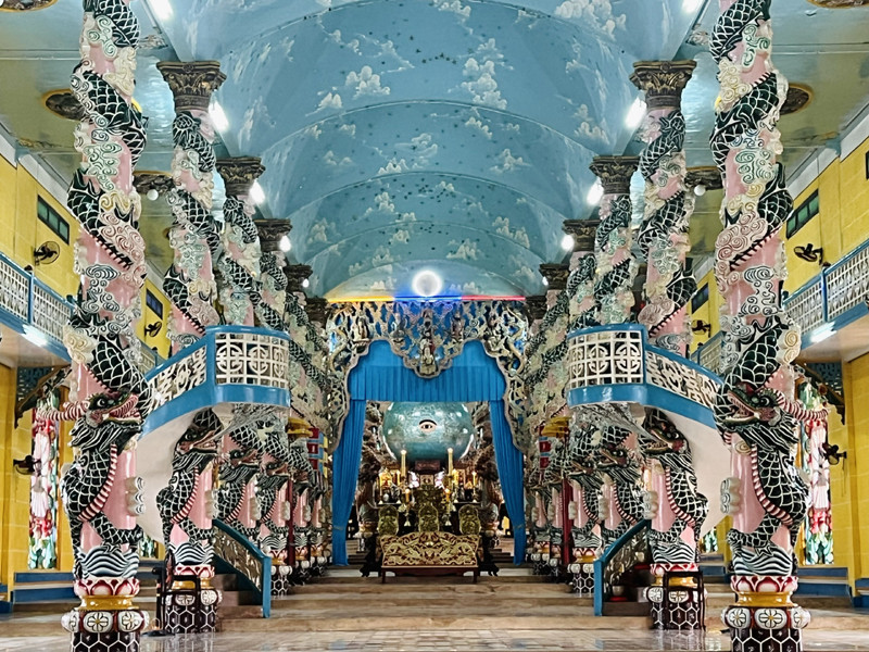 Được xây dựng từ năm 1933 và hoàn thành năm 1947, đến nay Toà thánh vẫn giữ nguyên vẻ đẹp lộng lẫy với các cột chạm khắc biểu tượng rồng nhiều màu sắc tinh xảo, trần huyền bí với các biểu tượng rắn, cửa sổ khắc hoạ biểu tượng Thiên nhãn đầy uy quyền…