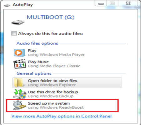 Cách sử dụng ReadyBoost rất dễ dàng. Bạn hãy cắm USB vào máy và bấm chọn sử dụng ReadyBoost trong cửa sổ menu pop-up của USB.