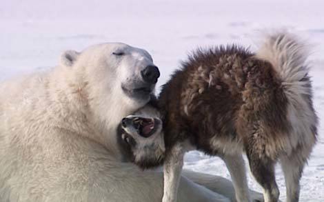 Đôi bạn gấu Bắc Cực và chó Eskimo (husky).