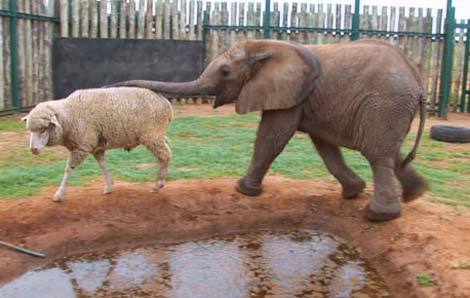Khu bảo tồn Shamwari Game ở Nam Phi là nơi một chú voi mồ côi tên Themnba kết bạn với một chú cừu merino tên Albert ở trang trại bên cạnh.