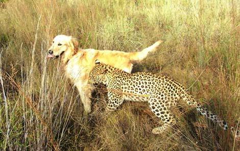 Salati – cô báo leopard 14 tháng tuổi, đang đùa vui với người bạn thân thiết – chú chó Tommy.