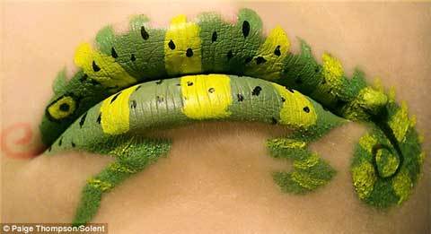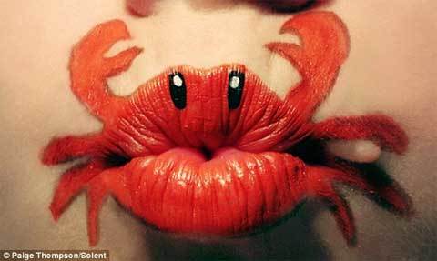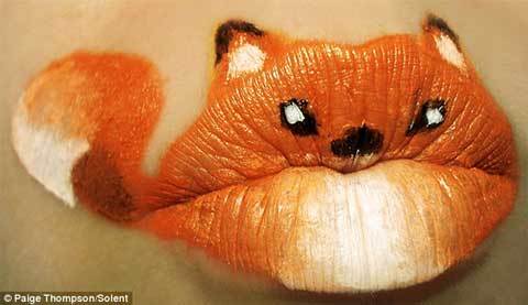 Họa sĩ người Mỹ Paige Thompson nảy ra ý tưởng về một con cáo khi chu mỏ đứng trước gương và bắt đầu vẽ hình những con vật ngộ nghĩnh trên chính môi mình.
