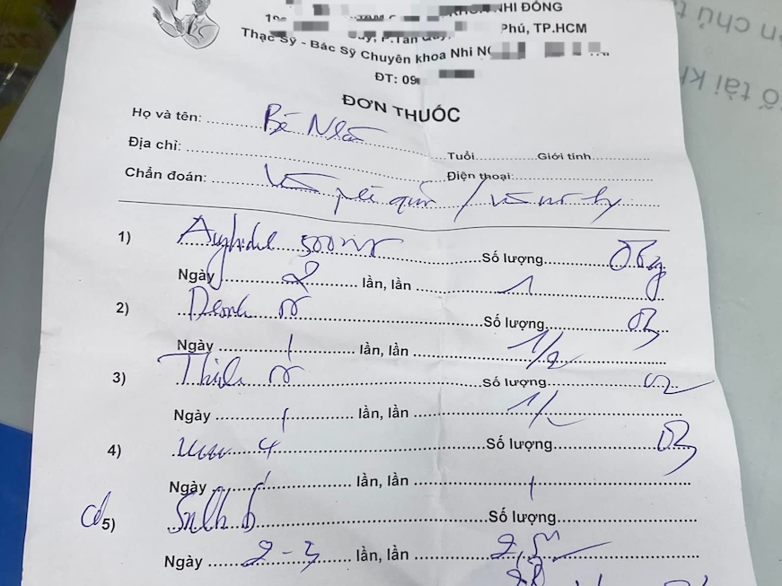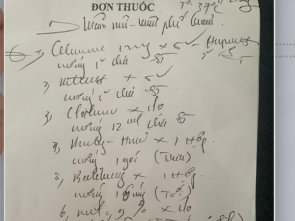 Một đơn thuốc được bác sĩ phòng khám kê với dòng chữ viết tay không thể dịch hết đơn. Ảnh: BĐCC