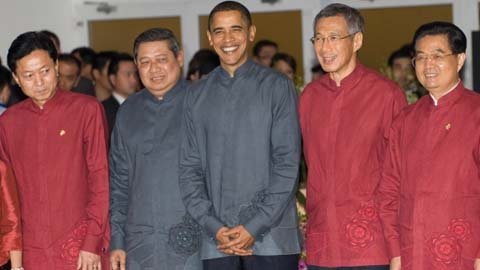 Năm 2009: Tổng thống Barack Obama và các lãnh đạo APEC chụp ảnh tại Singapore.