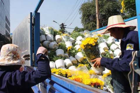 Phần lớn hoa đem về vẫn chưa nở, giúp đường hoa luôn tươi tắn trong bảy ngày phục vụ du khách, từ tối ngày 28 đến mùng 5 âm lịch.