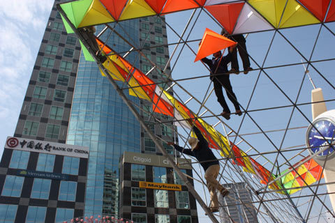 Các nhân viên vệ sinh cố gắng giữ sạch sẽ cho công trình đường hoa, vốn nằm trong khu trung tâm du lịch của thành phố.