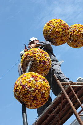 Các nhân công đem hoa về đặt trong các tiểu cảnh đã hoàn thành phần khung.
