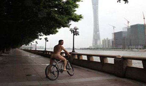 Ou Zhihang, ông chủ đình đám của đài truyền hình Quảng Đông, Trung Quốc khiến bàn dân thiên hạ được phen “nổ đom đóm mắt” khi trần như nhộng, thong dong trên một chiếc xe đạp, diễu khắp thành phố. Mục đích duy nhất của đại gia này là kêu gọi người dân bảo vệ môi trường.