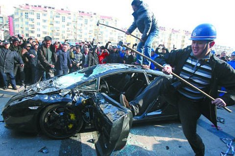Việc một đại gia người Thanh Đảo vung không ít tiền, thuê người dùng búa tạ đập nát siêu xe Lamborghini Gallardo có trị giá tới 230.000 USD được nhiều cư dân mạng đánh giá là hành động điên rồ bậc nhất của giới lắm tiền Trung Quốc trong năm 2011.